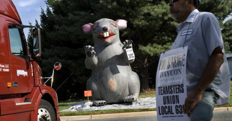 The announcement follows a campaign against “Scabby”—a symbol used by unions at demonstrations for decades—by NLRB General Counsel Peter Robb. The general counsel, who is said to loathe the image of the rabid rodent with bloodshot eyes and bared teeth, has advocated for banning its use when workers are protesting someone other than their direct employer.